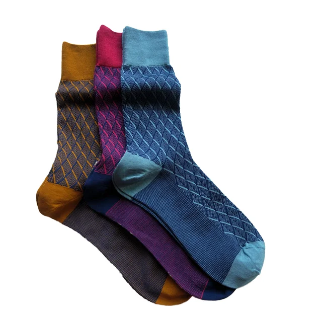 Men's Colorful Diamond Plaid Four Seasons Gentleman Cotton Mercerized Mid-Tube Socks European