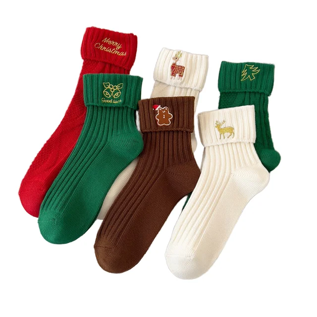 Autumn Winter Cotton Mid-Stocking Socks for Christmas Embroidered Cartoon Style Fashionable
