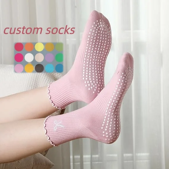Customized Hot Melt Adhesive Pilates Socks with Custom logo Floral Embroidery Pilates Socks