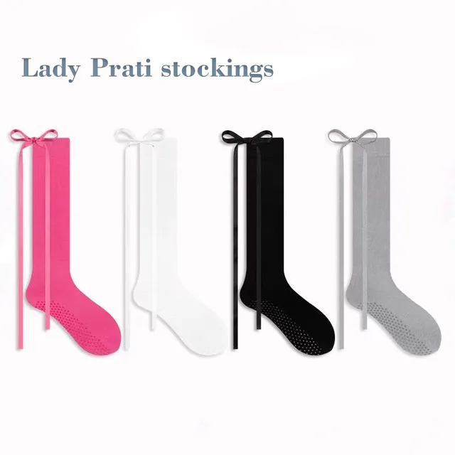 Customized Long-style Bow Plasti-knit Socks, with Jacquard Embroidery and logo Design, Exuding a Strong Sense of Femininity.